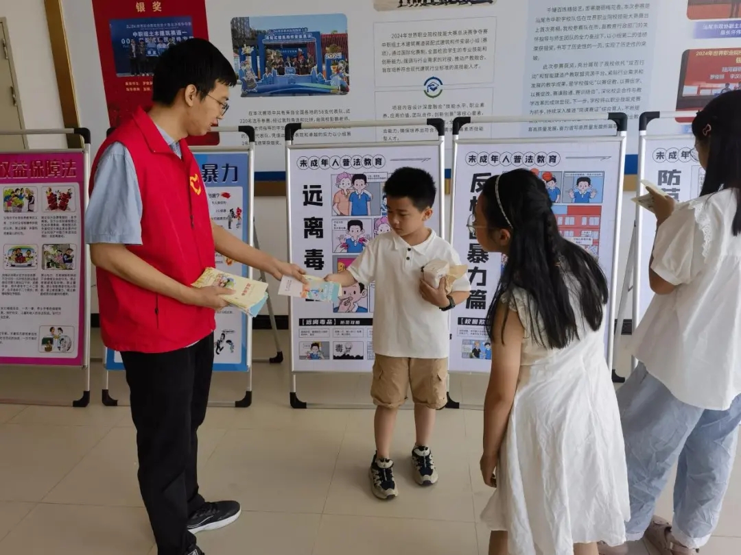 活动现场,禁毒主题模特秀、快板、朗诵、歌曲等文艺节目轮番上演,通过多样化的节目形式,实现禁毒知识有效传播,全面揭示毒品对个人健康、家庭稳定及社会秩序造成的严重危害。在热烈的氛围中,县司法局积极发挥自身作用,精心设置未成年人普法教育展板,内容涵盖远离毒品、防性侵、反校园霸凌、防范电信网络诈骗等多个方面,图文并茂地为现场群众普及法律知识。与此同时,工作人员同步发放禁毒、未成年人保护普法资料,扩大知识覆盖面。此外,县司法局还为活动提供了丰厚奖品,吸引小朋友踊跃参与答题,在互动中有效提升禁毒知识宣传实效。