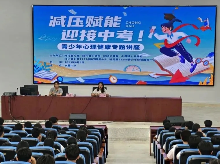 6月9日,县妇联携手县卫健局、团县委、水唇镇人民政府走进水唇中学,创新采用“大讲座+小课堂”形式开展未成年人保护系列活动。特邀中级心理治疗师为考生开展心理健康专题讲座,传授实用心理调节方法;县妇联主席现场讲解防溺水安全知识,展示仿真毒品模型,开展禁毒宣传,为青少年健康成长筑牢安全防线。 ' fill='%23FFFFFF'%3E%3Crect x='249' y='126' width='1' height='1'%3E%3C/rect%3E%3C/g%3E%3C/g%3E%3C/svg%3E)