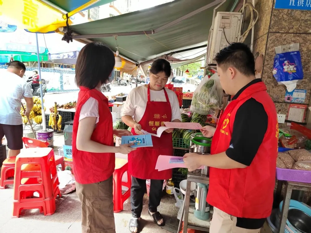 6月19日上午,县市场监督管理局在县中心市场组织开展2025年“诚信尚俭 共享食安”食品安全宣传周暨送法下乡宣传活动。现场通过设立咨询台、悬挂条幅以及发放科普宣传手册等方式,向群众普及《中华人民共和国食品安全法》《中华人民共和国反食品浪费法》《中华人民共和国消费者权益保护法》等法律法规,解答食品安全、消费者权益等方面的问题。同时,工作人员重点向市场内商户发放《食杂店合法合规经营应知重点》等宣传手册,开展“一对一”法律宣讲,督促经营者落实索证索票、明码标价等制度。