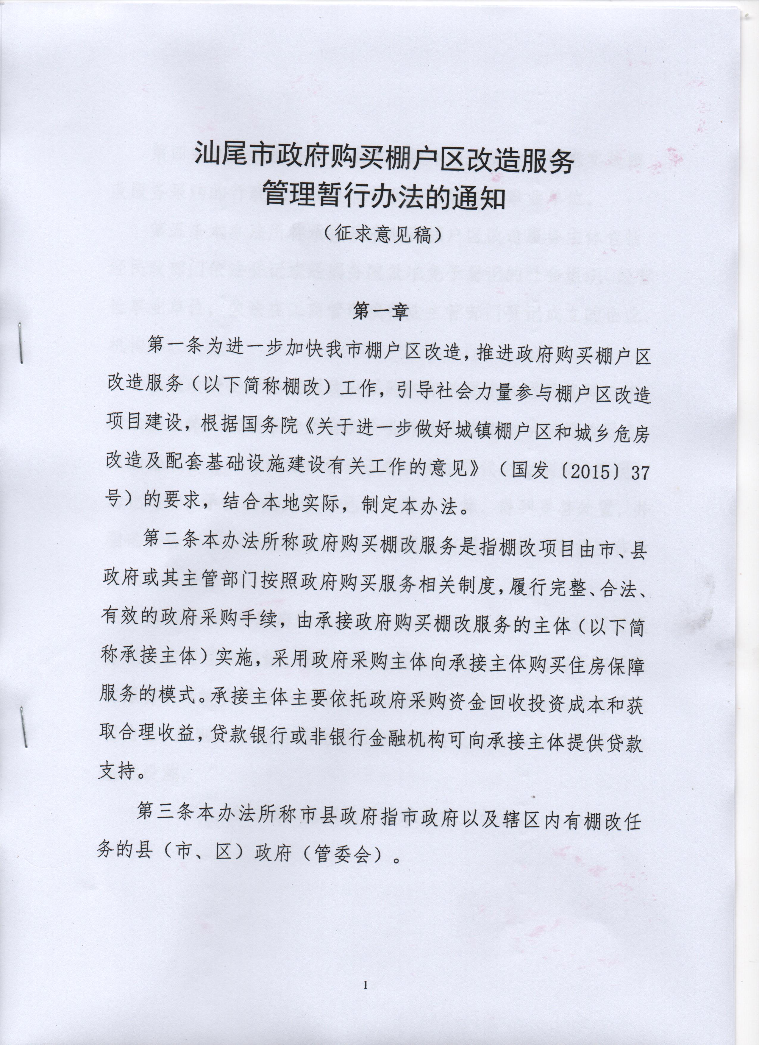 汕尾市政府购买棚户区改造服务管理暂行办法的通知