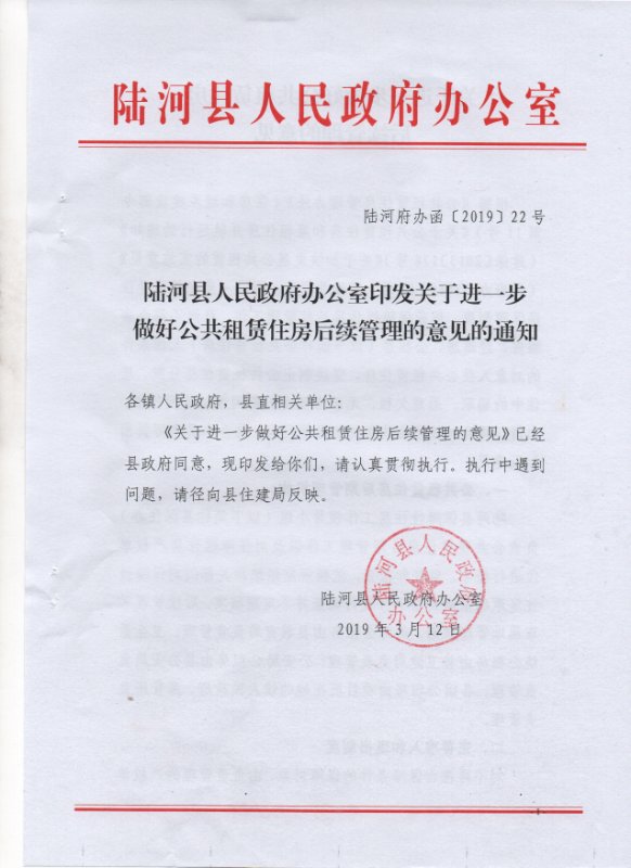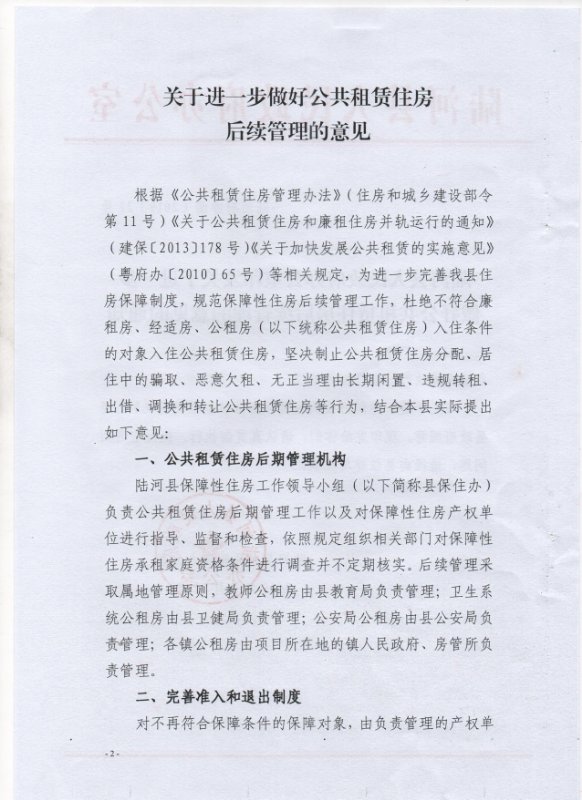 陆河县人民政府办公室印发关于进一步做好公共租赁住房后续管理的意见的通知