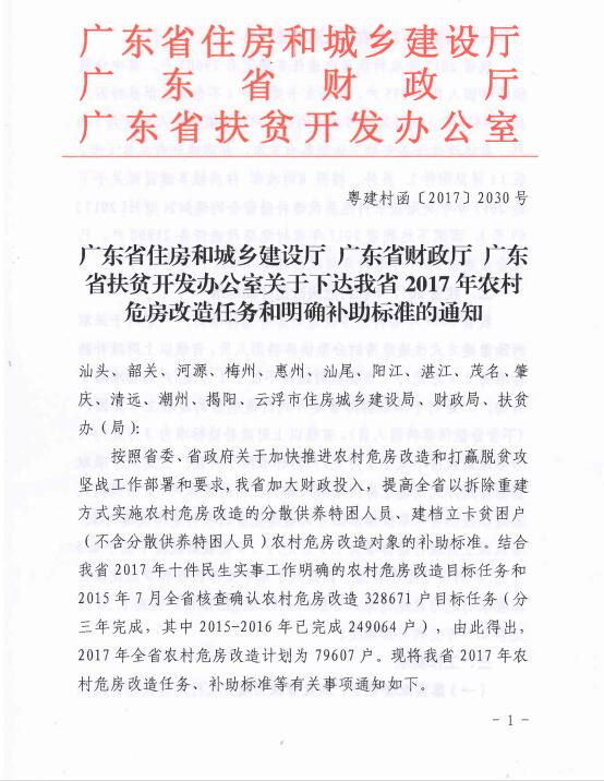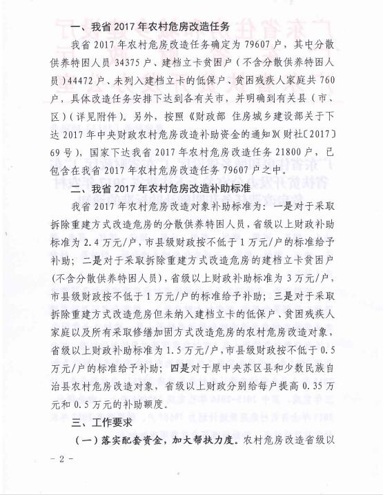 下达2017年农村危房改造任务的通知