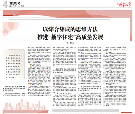 新时代“数字住建”应贯彻综合集成的科学思路,下大力做好由“分”到“合”的文章。