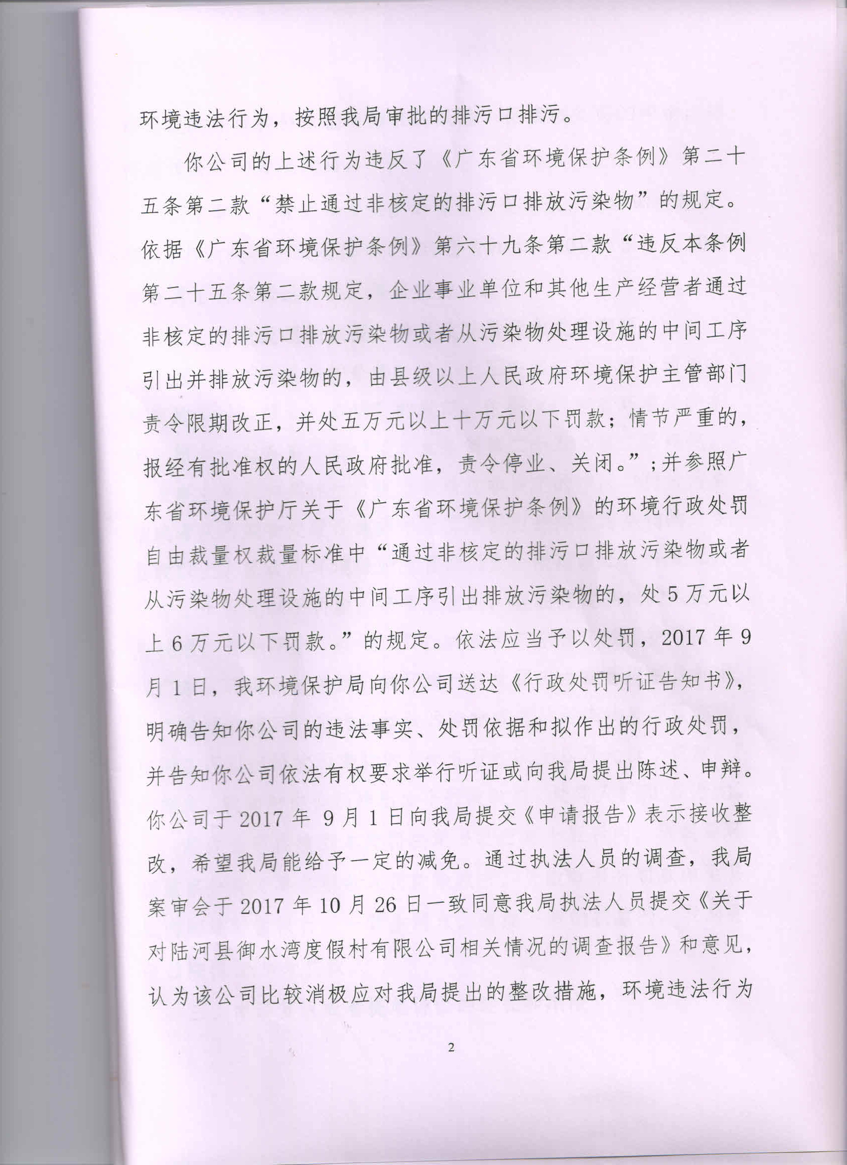 行政处罚决定书(陆河县御水湾度假村有限公司)
