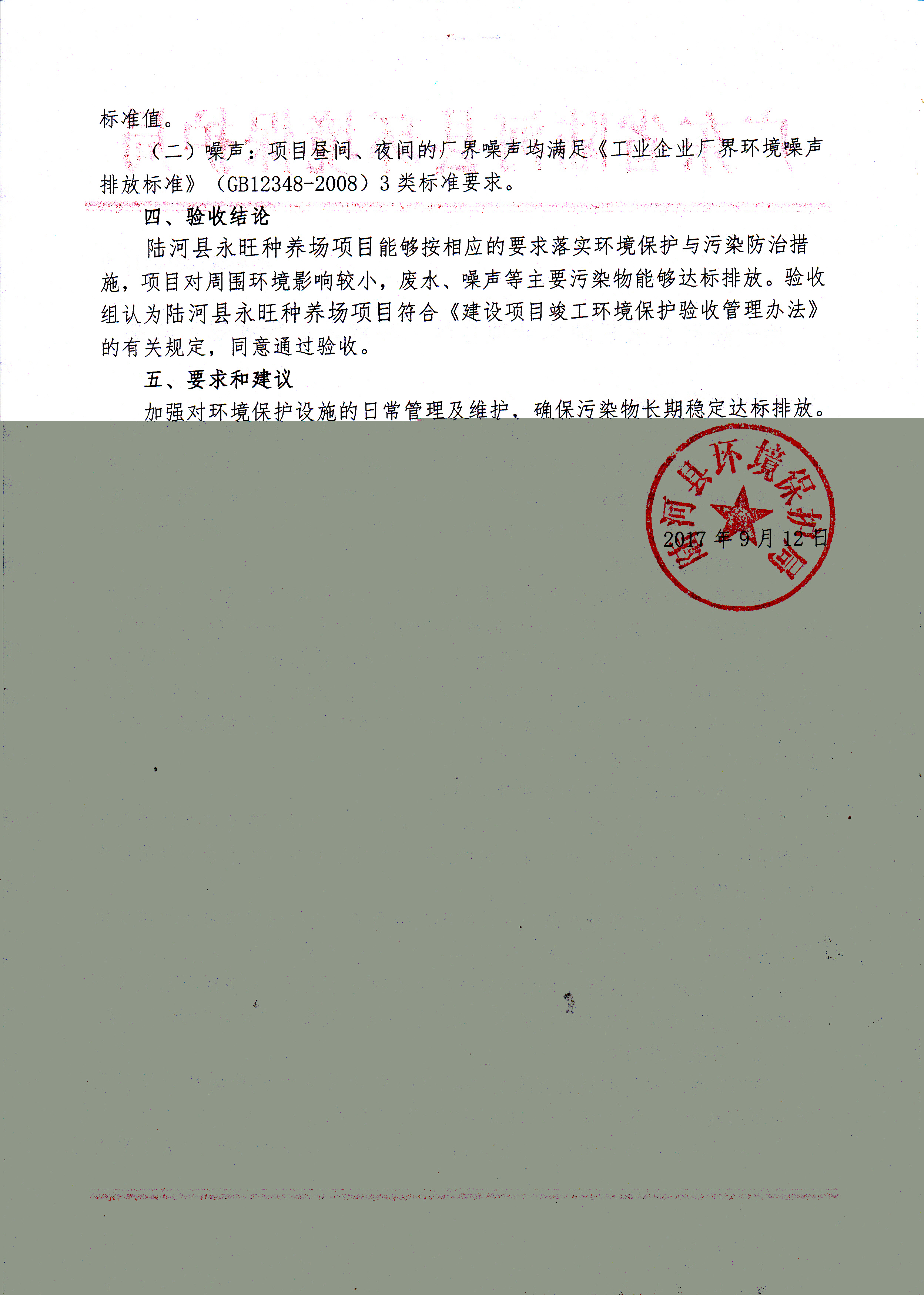 关于陆河县永旺种养场项目竣工环境保护验收意见的函