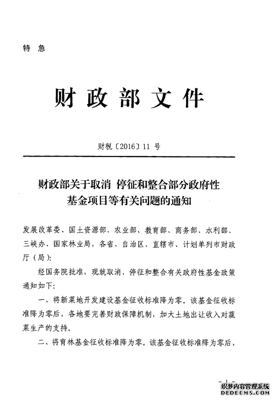 财税〔2016〕11号文件通知