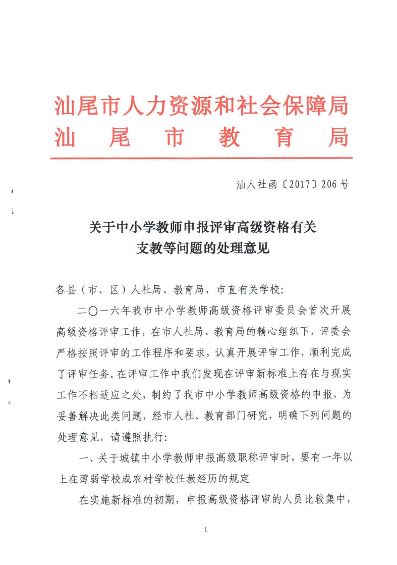 附件:关于中小学教师申报评审高级资格有关支教等问题的处理意见