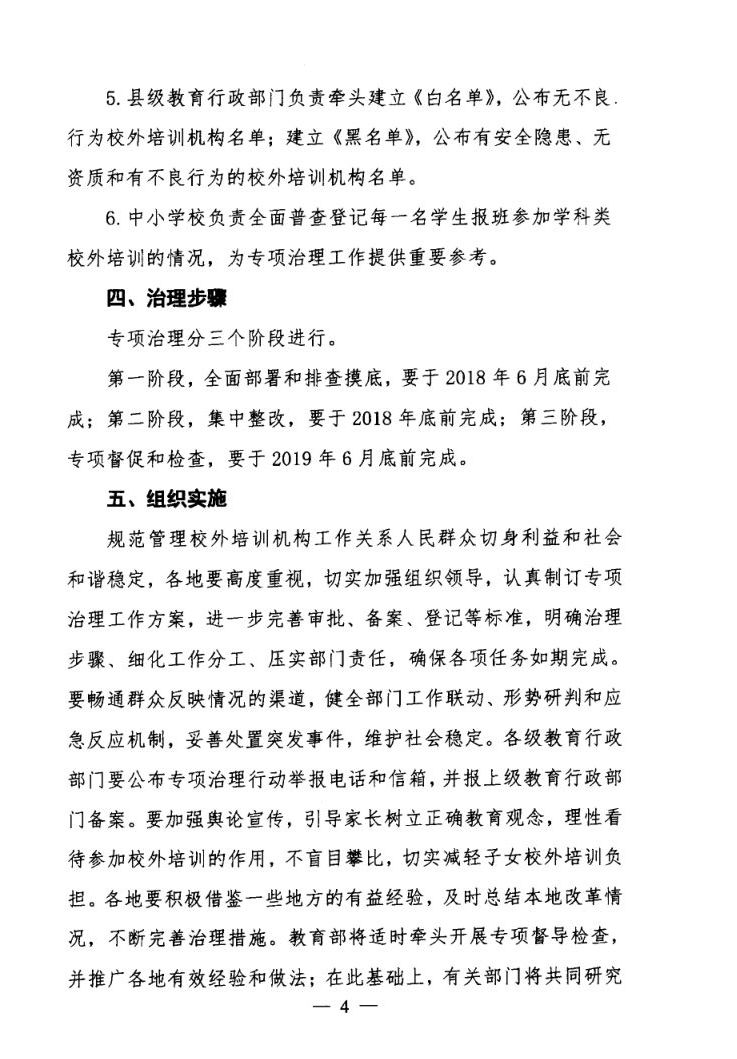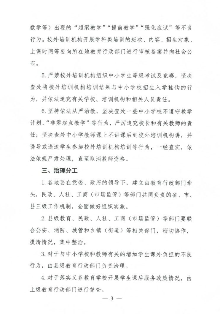 关于印发切实减轻中小学生课外负担开展校外培训机构专项治理方案的通知