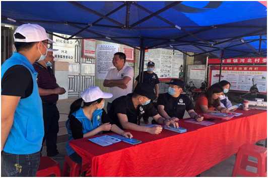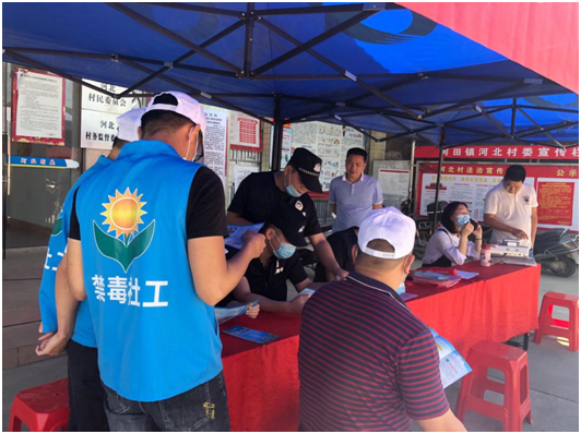 2020年4月28日上午,陆河县人社局借“就业扶贫助复工”流动招聘活动契机,联合县禁毒办、陆河阳光禁毒社工在河田镇河北村委开展了以“不让毒品进村落,不让毒品进我家”为主题的禁毒宣传教育活动。