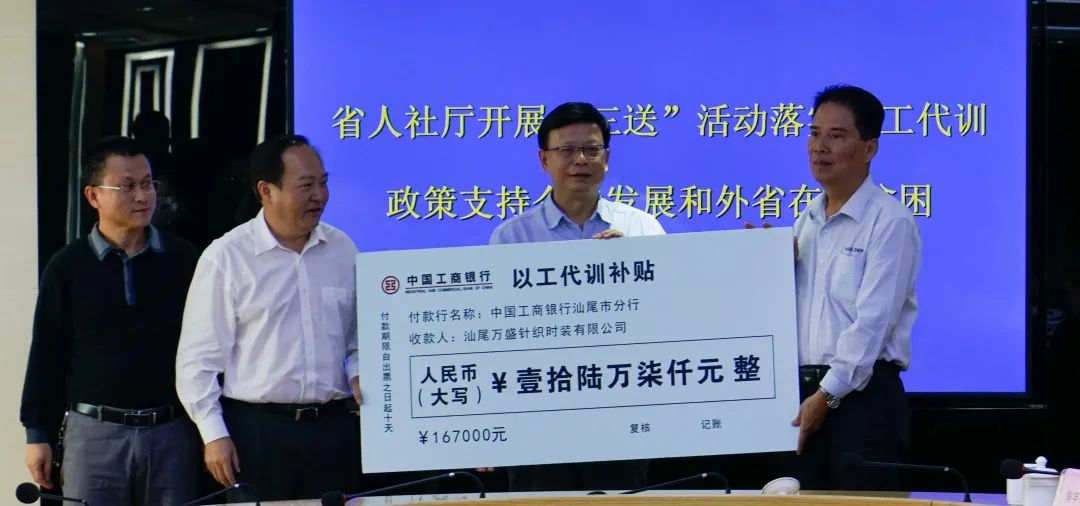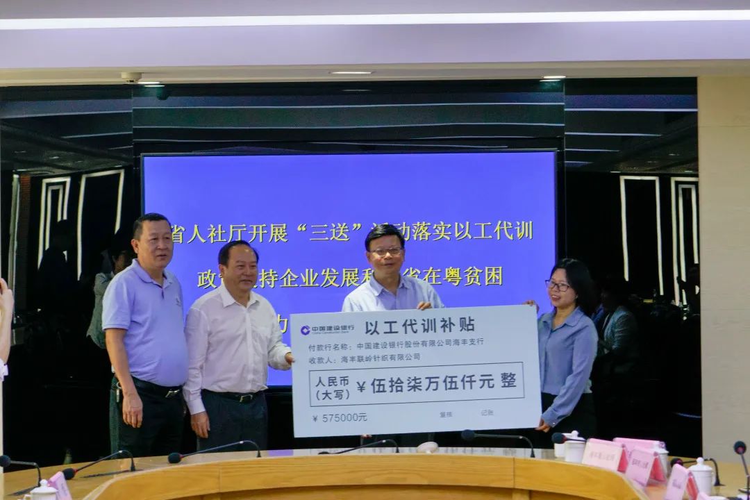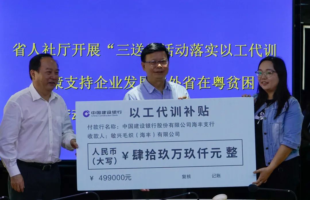 随后,调研组一行在市人力资源社会保障局召开深入开展“三送”活动落实以工代训政策支持企业发展和外省在汕贫困劳动力“三稳”工作座谈会,并举行了以工代训补贴“送资金”仪式,为汕尾万盛针织时装有限公司、敏兴毛织(海丰)有限公司和海丰县联岭针织有限公司送出以工代训补贴共计124.1万元。