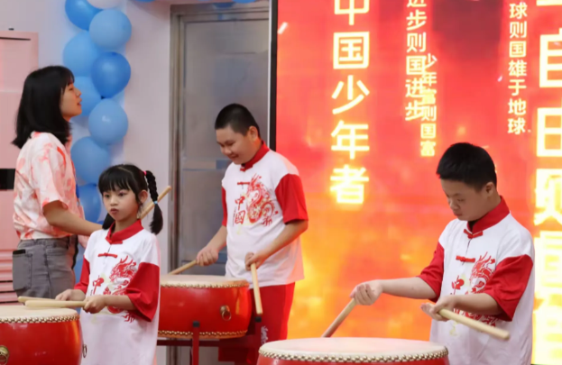 开场节目由八(2)班带来大鼓表演《哪吒》,鼓槌起落间,激昂的鼓点如雷霆万钧,敲出力量与勇气。四年级带来的非洲鼓表演《勇气大爆发》,则以热情奔放的节奏,传递着无畏向前的信念。五年级的大鼓表演《中国龙》,磅礴鼓音似巨龙咆哮,彰显中华气势。鼓乐声声,是特殊孩子们对生命活力的诠释。
