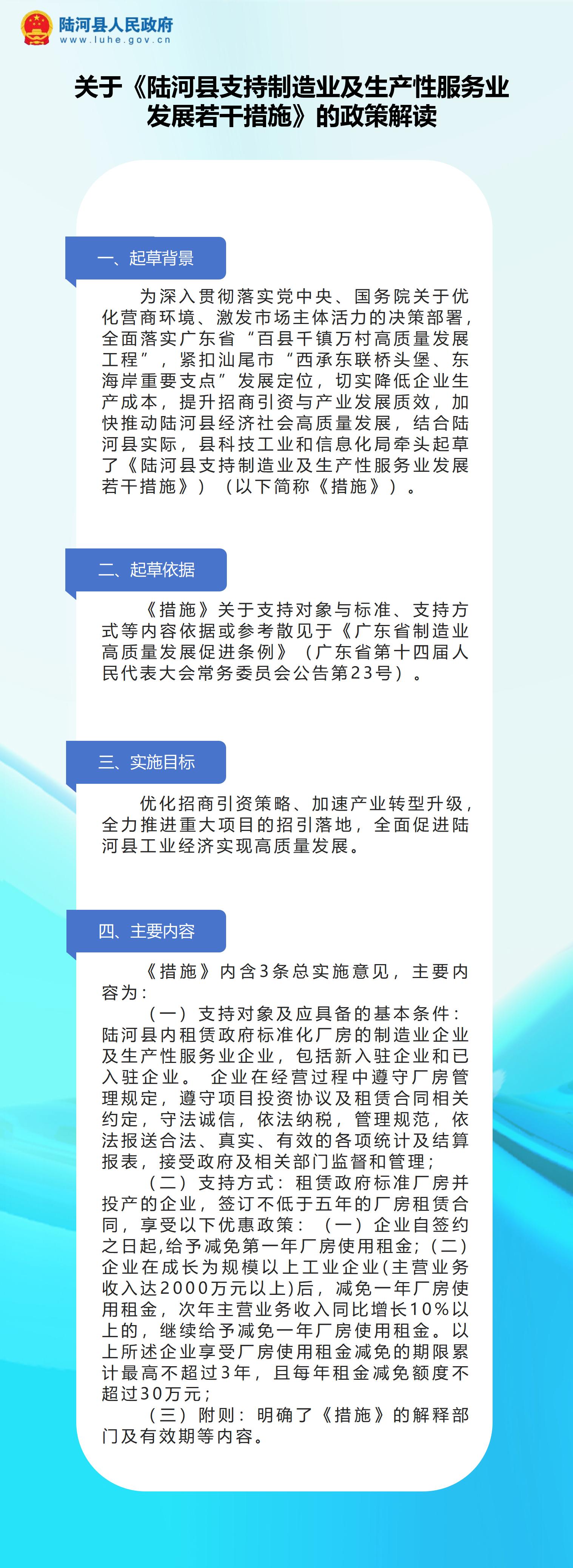 关于《陆河县支持制造业及生产性服务业发展若干措施》的政策解读