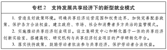 (二)增强现代服务业吸纳就业能力。提升现代服务业发展水平,鼓励发展专业化的生产性服务业。深入实施“互联网+”行动计划,推动互联网与服务业各领域深度融合,加快培育一批具有鲜明特色和较强竞争力的新技术、新模式、新业态。推动共享经济率先在交通、住宿、餐饮、金融、教育培训、技术服务等领域取得突破,支持发展新型就业模式。大力发展旅游、教育、健康、养老、体育、家庭服务等生活性服务业,创造更多就业机会。(省发展改革委、经济和信息化委、人力资源社会保障厅、交通运输厅、商务厅、旅游局负责)