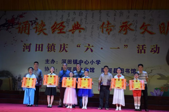 最后,领导为获得“诵读经典,传承文明”河田镇庆“六一”活动荣誉的代表颁发奖状,比赛虽然结束了,但对经典的学习和探究远没有结束,愿我们的生命在经典的滋养下更加丰盈,愿我们的生活在经典的浸润下更加富有意义。