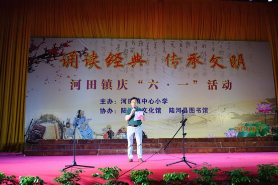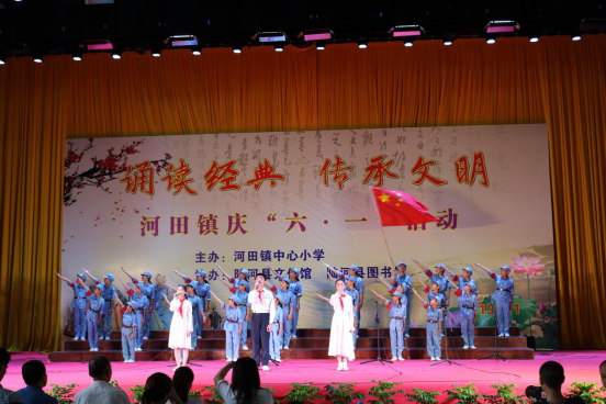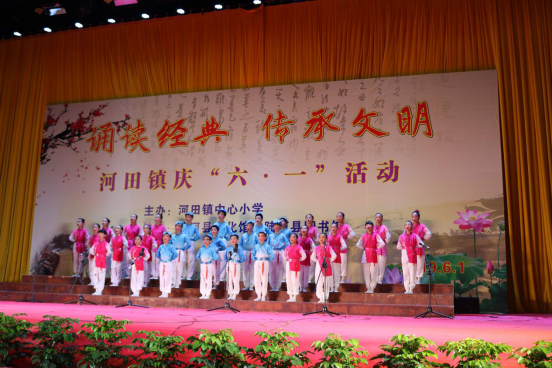 中华文化源远流长,经典诗文内容广泛,语言精辟,思想深邃。经典古诗文凝聚着中华民族的文化精髓,是文化宝库中璀璨的明珠,是人类伟大的精神财富。为进一步促进师生文化素养的提高,倡导阅读经典,与高尚对话,与智慧碰撞,在诵读中继承和弘扬优秀文化遗产,提高朗读水平,通过庆“六一”活动的载体,由河田镇中心小学主办,陆河县文化馆、陆河县图书馆协办的“诵读经典,传承文明”庆“六一”活动在县文体综合馆成功举办。现将活动总结如下: