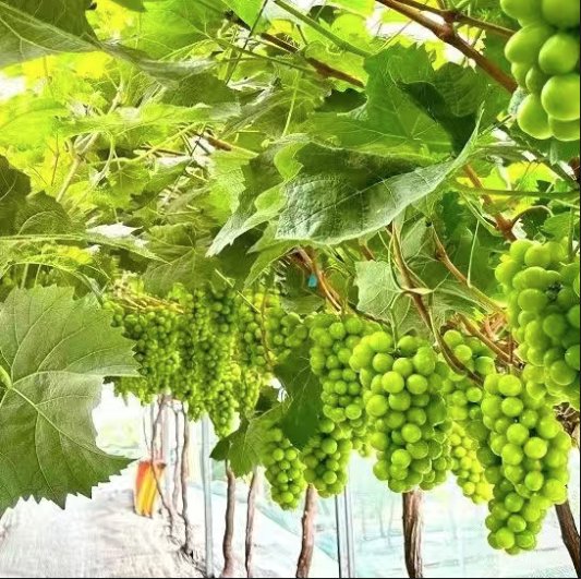 葡萄生长需要充足的阳光和温暖的气候,以促进果实的成熟和糖分的积累。水土优渥的陆河,属南亚热带季风性湿润气候,日照充足,夏热偏凉,冬寒偏暖,年温差小,终年无霜期超过350天,孕育出品质绝佳的陆河葡萄。陆河葡萄种植面积130多亩,产量近300吨。其中布金村的阳光玫瑰是一种高品质的葡萄品种,其果实呈黄绿色,圆润饱满,口感香甜,带有浓郁的玫瑰香气。墩塘村共种植葡萄60亩,其中“夏黑”葡萄具有抗病、丰产、早熟、耐贮藏、口感好等特点,果穗呈圆筒形或圆锥形,果粒着生紧密,穗形整齐,平均穗质量670克。果实圆形,排列紧密,单果质量8克,是最受欢迎的葡萄品种之一。陆河葡萄富含维生素C、维生素B族、钙、磷、铁等营养成分,具有抗氧化、增强免疫力、促进消化的功效。陆河葡萄的种植面积不断扩大,同时瞄准休闲农业,引进先进葡萄栽培技术和优质葡萄品种,打造了集葡萄种植基地、休闲主题广场和竹林公园为一体的墩塘生态农业观光园,吸引了众多游客前来采摘体验。