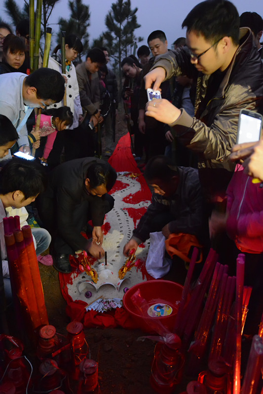 这是用大米制作的“龙”,已早早“爬”上山,等着民众前往迎接。制“龙”传承者小心翼翼地在“龙”身插上硬币做鲮,并装上眼睛,酷似一条活“龙”。