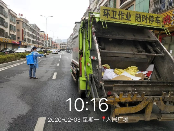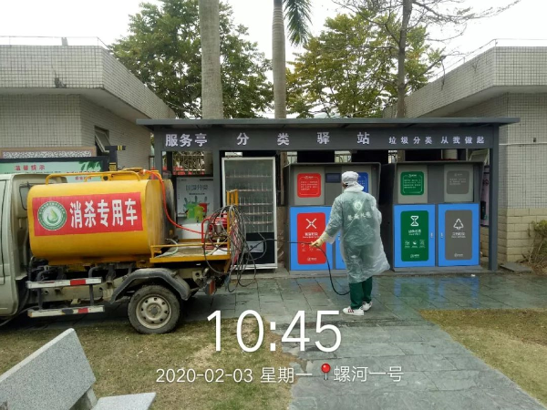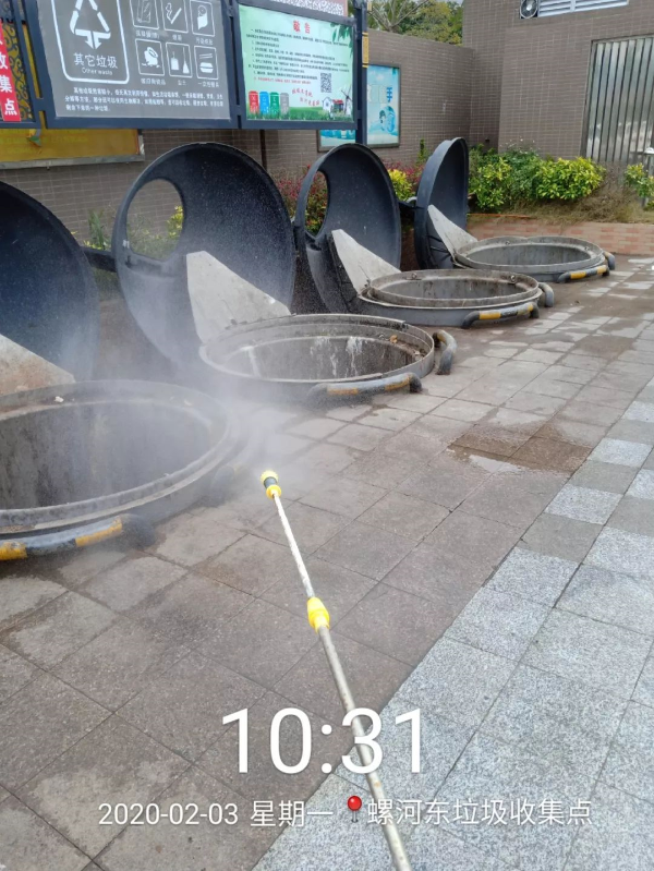 10:00 环卫站环卫工人 对垃圾收集设施和垃圾箱体 进行消毒