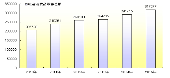 全年完成社会消费品零售总额317277万元,比上年增长8.8%。分行业看,批发业11664万元,增长10.0%;零售业285230万元,增长8.7%;住宿餐饮业20383万元,增长8.6%。