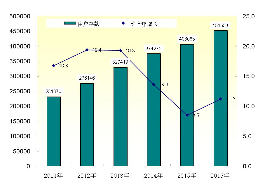 全年金融机构年末各项存款余额715518万元,增长20.1%。其中,住户存款451533万元,增长11.2%。各项贷款余额277678万元, 增长15.9%。其中,住户贷款189162万元,非金融企业及机关团体贷款88228万元,分别比上年末增长26.8%、-2.5%。