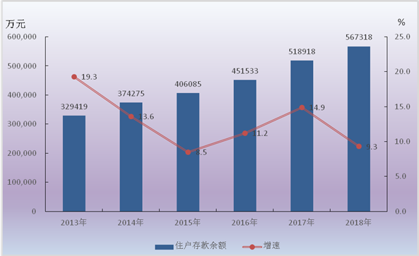 2013-2018年住户存款余额及其增长速度