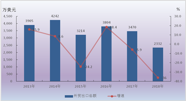 2013-2018年外贸出口总额及其增长速度