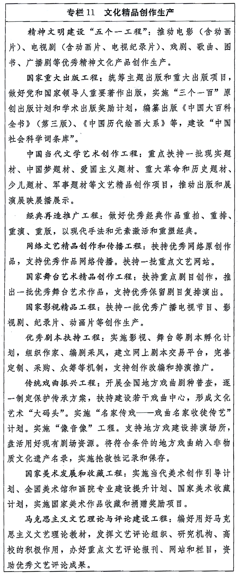 《国家“十三五”时期文化发展改革规划纲要》主要内容如下。