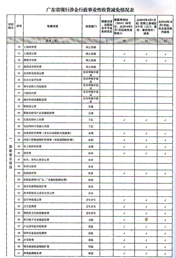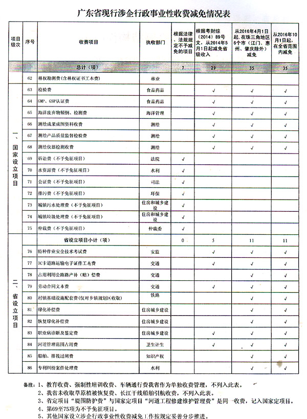 附件:广东省现行涉企行政事业性收费减免情况表