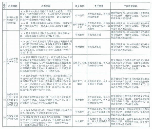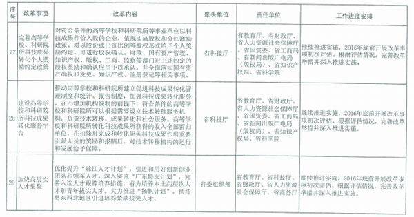 附件:广东省全面创新改革试验改革事项责任分工和进度安排表