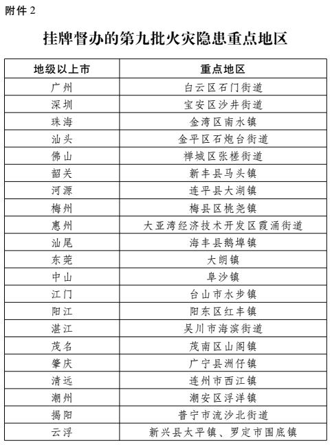 全真版:广东省人民政府办公厅关于公布第八批火灾隐患重点地区整治工作检查验收结果和挂牌督办第九批火灾隐患重点地区的通知