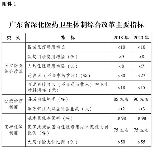 附件:1.广东省深化医药卫生体制综合改革主要指标 2.广东省深化医药卫生体制综合改革拟出台配套文件目录
