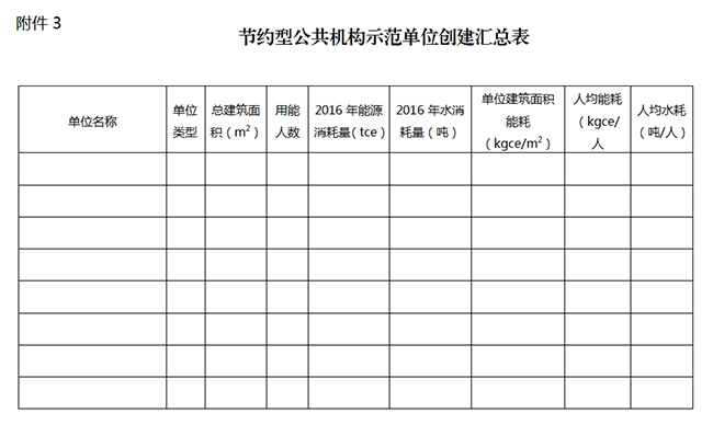 各地公共机构节能管理、发展改革、经济和信息化、财政部门和省直主管部门要对创建实施方案及相关材料进行认真审核,创建实施方案应按照《节约型公共机构示范单位创建实施方案编制大纲》(发改环资〔2012〕1982号附件)编制,被推荐单位应符合能源资源消费总量、完成近两年节约能源资源目标、能源资源利用效率等创建约束条件。《节约型公共机构示范单位创建汇总表》、创建实施方案等材料(含纸质版一式二份,电子版一份),请于2017年5月19日前报送省府机关事务管理局。