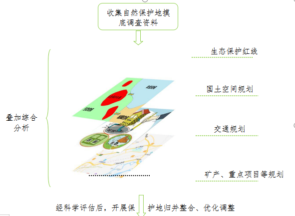 开展区域综合评估,以保持生态系统完整性为原则,遵从保护面积不减少、保护强度不降低、保护性质不改变的总体要求,该调出跳出,该划入划入,通过专家评审,科学确定自然保护地数量、类型和名称。