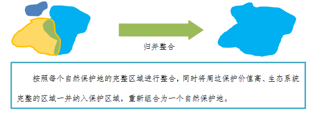 对生态过程联系紧密、自然资源产权相同的相邻或相连的多个自然保护地,打破因行政区划、资源分类设置造成的条块割裂状况,归并为一个自然保护地,同一类相邻、相连的自然保护地应优先归并,保持重要生态空间的生态过程完整、物种栖息地连通,实行统一保护管理,从根本上解决保护管理分割、保护地破碎和孤岛化问题。