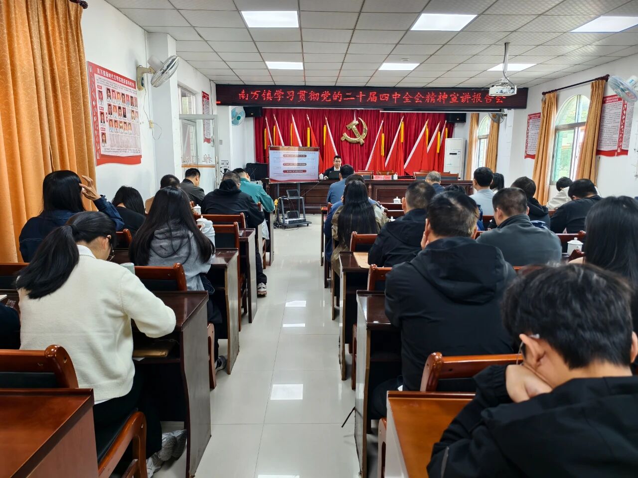 为深入学习领会党的二十届四中全会精神,切实把全镇干部职工的思想和行动统一到党中央决策部署上来,12月12日上午,南万镇组织全镇干部职工在南万镇党群服务中心举办学习贯彻党的二十届四中全会精神宣讲报告会。宣讲会邀请了县委宣讲团成员林晓能老师主讲,由南万镇党委委员庄苏丽主持。